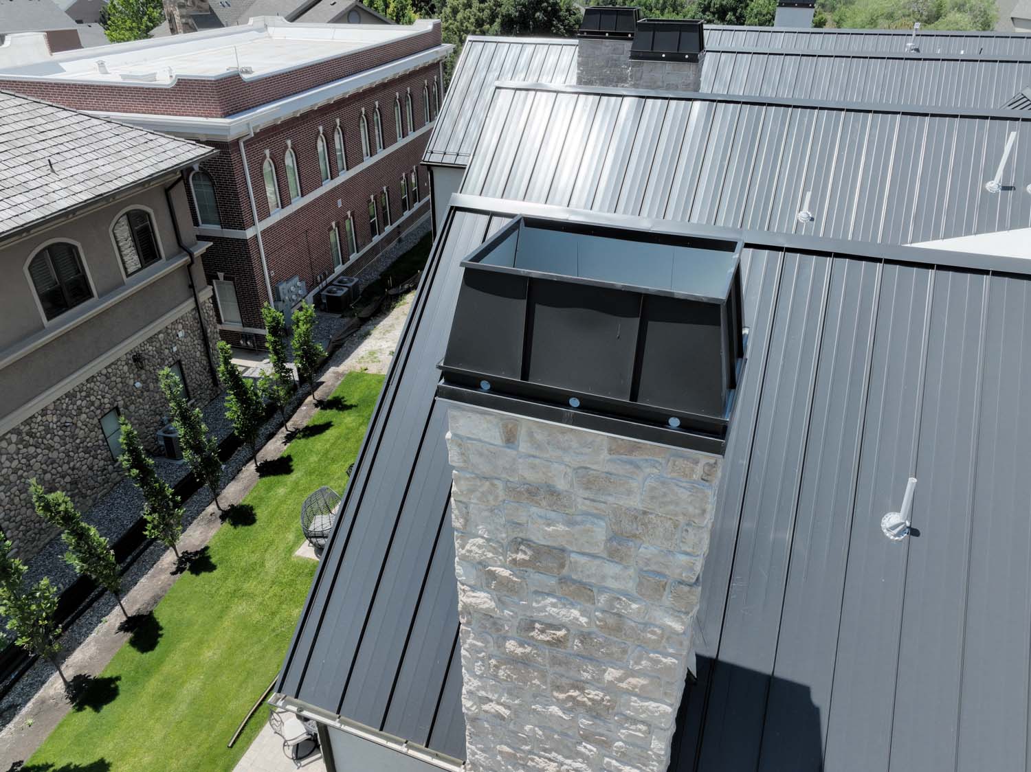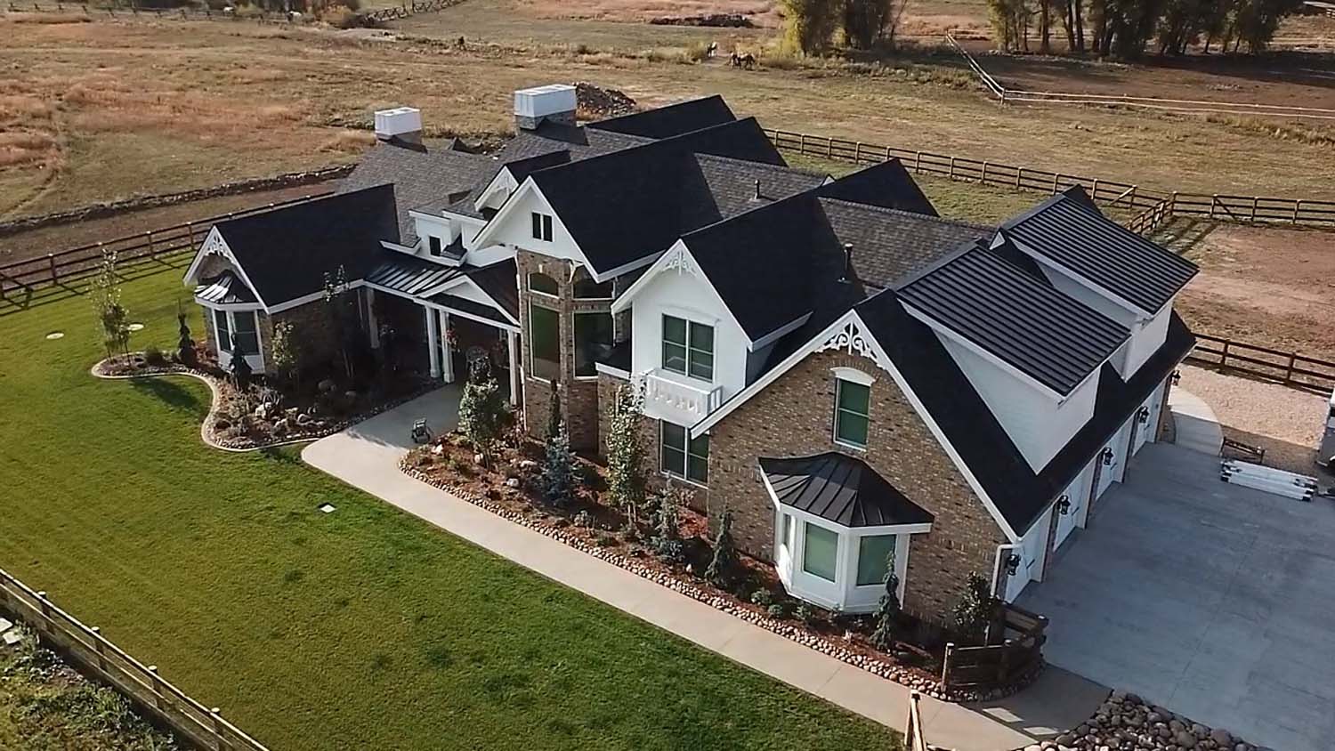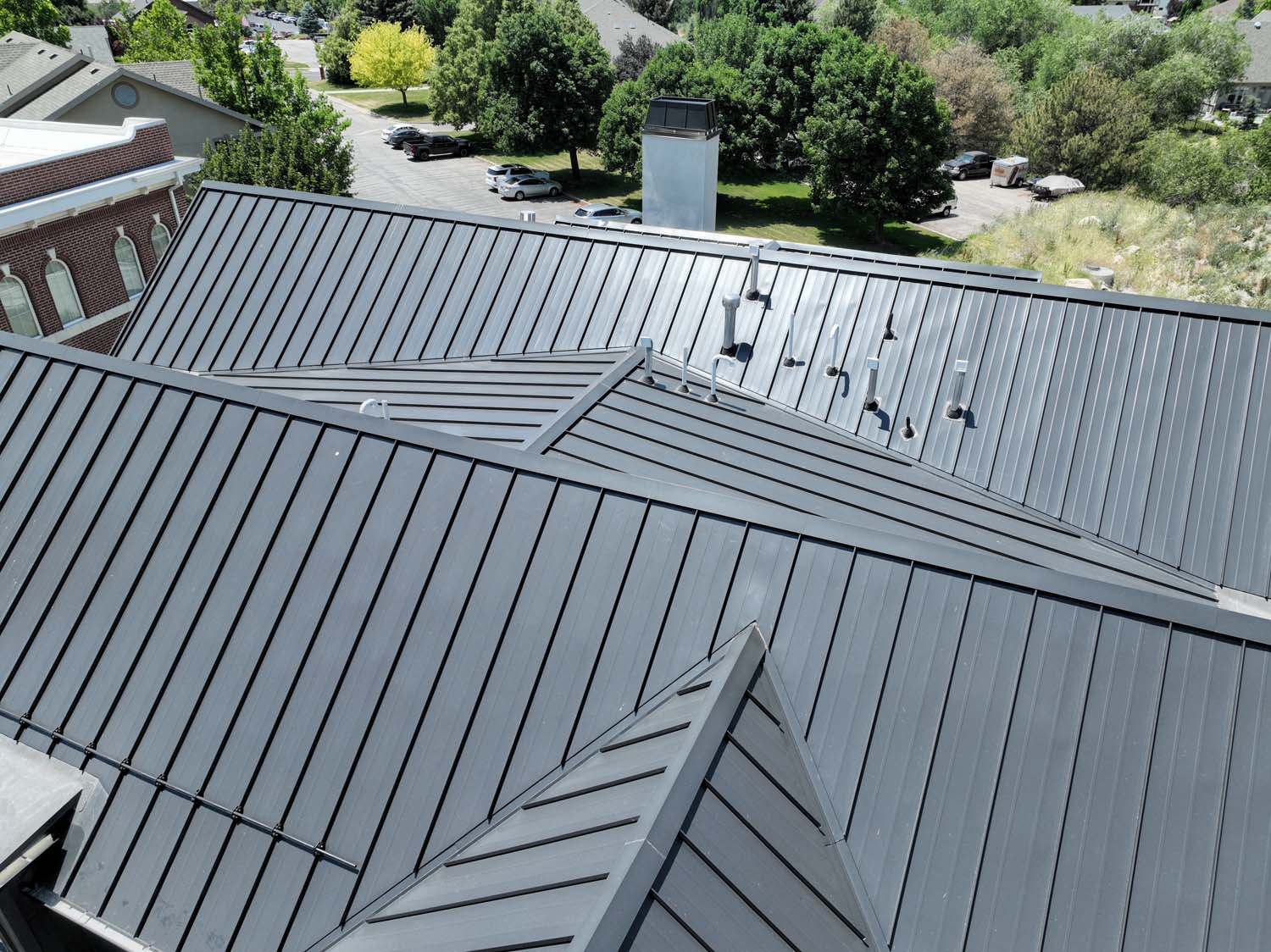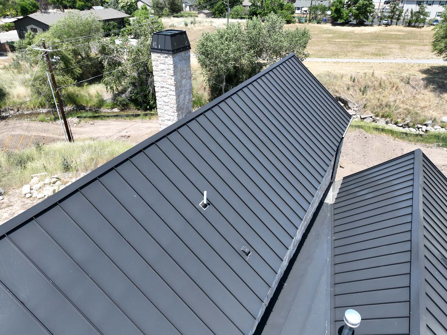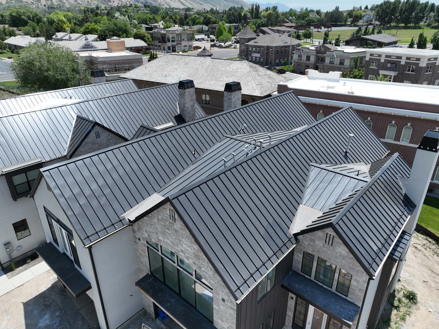 “We are very proud of the raised seam metal roof crafted by Brady Roofing & partners. Our roof had multiple challenges, and their customer-friendly crews did a fine job figuring it out and getting the job done. We even got drone views of what a fabulous roof they created for us.”