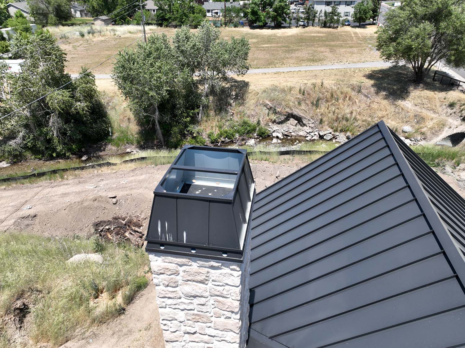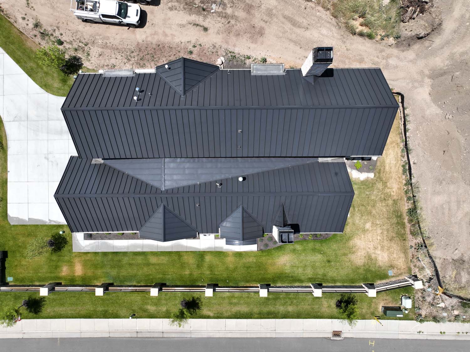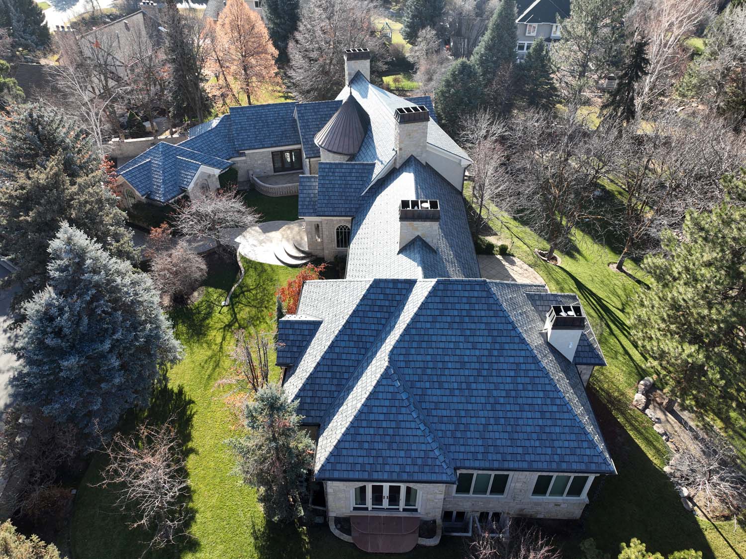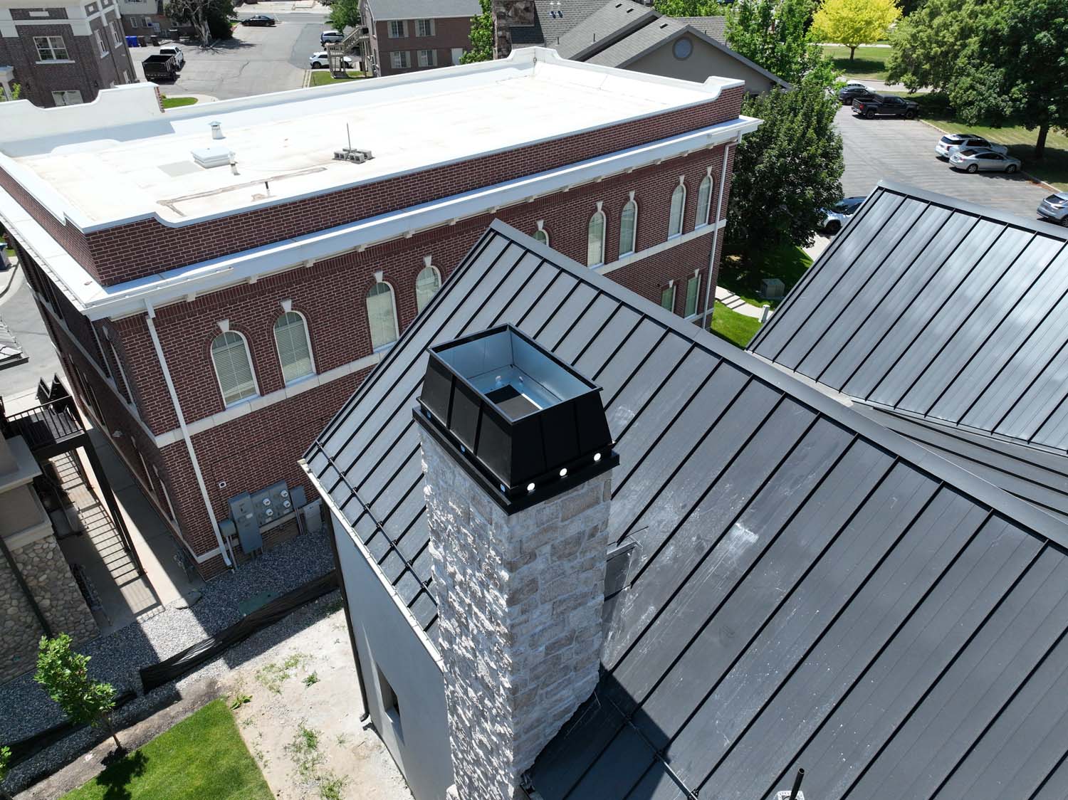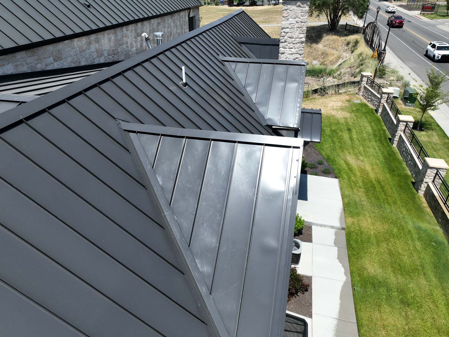 “We are very proud of the raised seam metal roof crafted by Brady Roofing & partners. Our roof had multiple challenges, and their customer-friendly crews did a fine job figuring it out and getting the job done. We even got drone views of what a fabulous roof they created for us.”