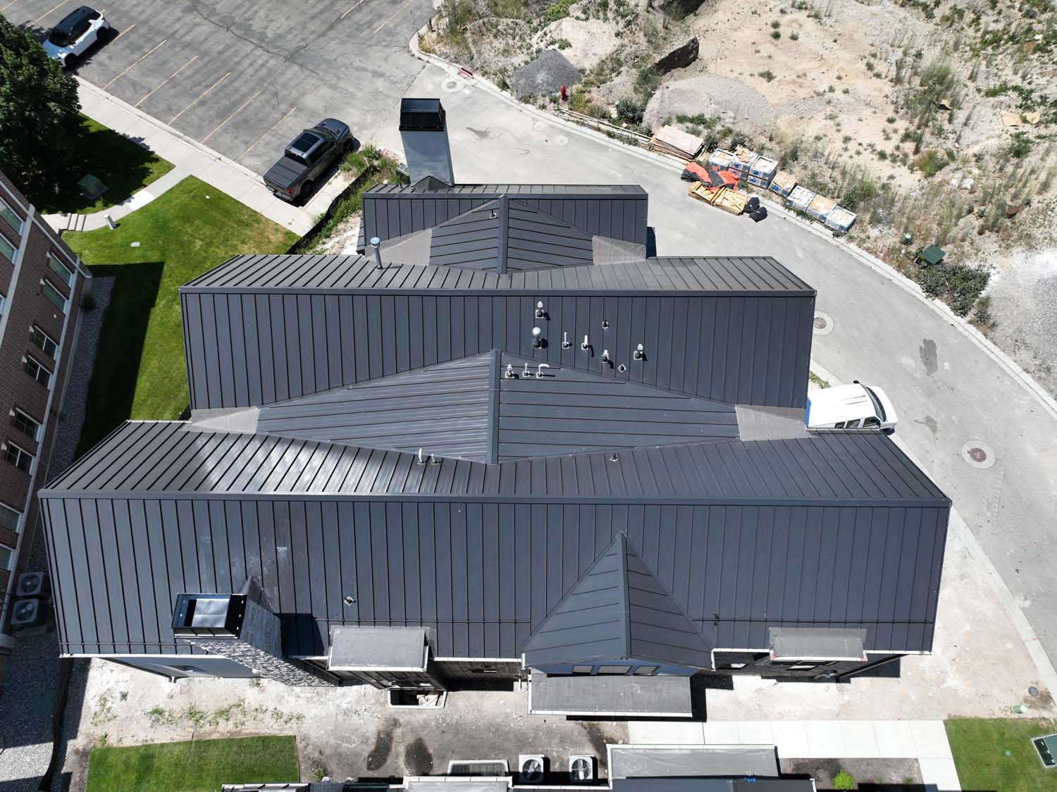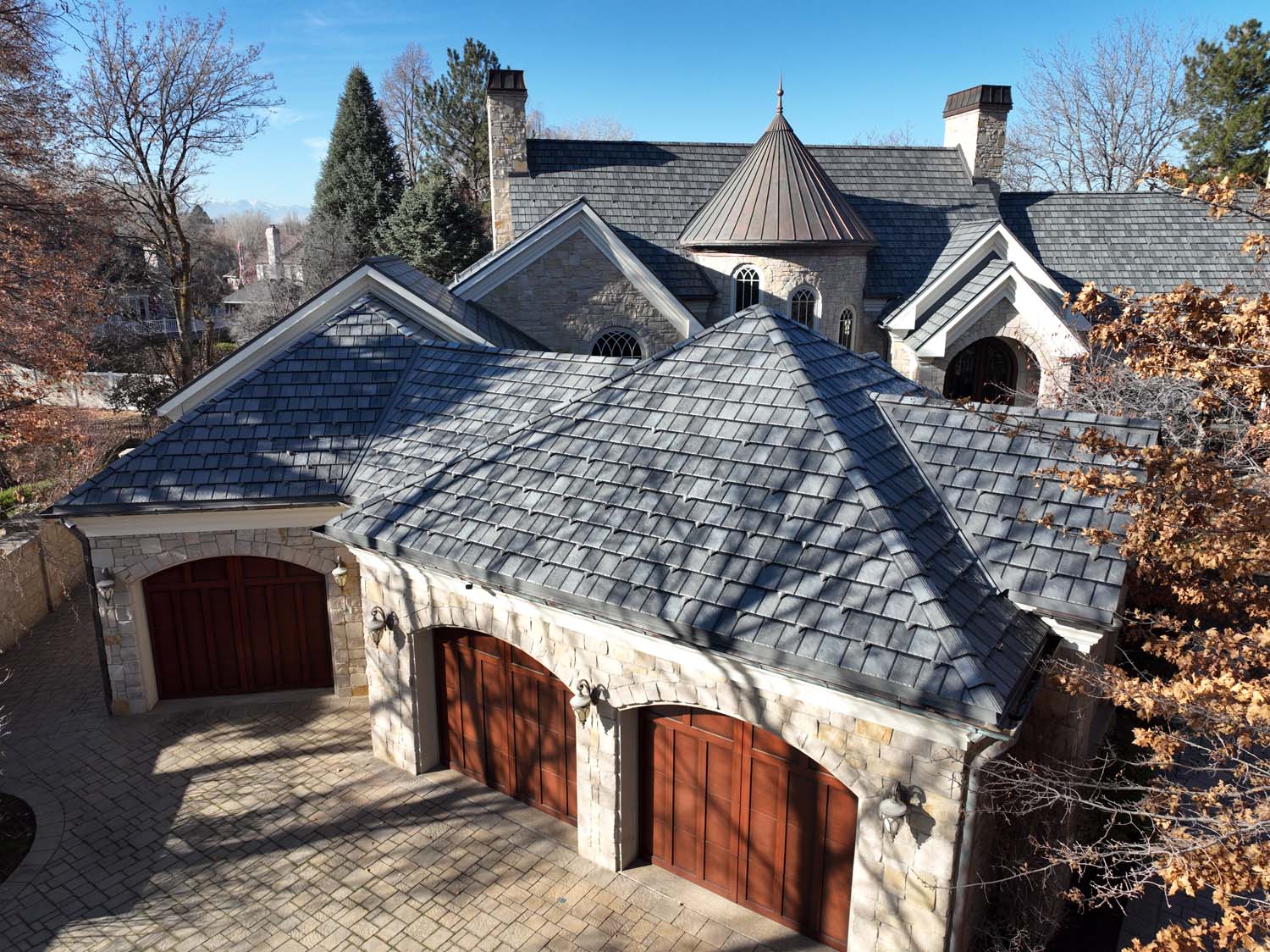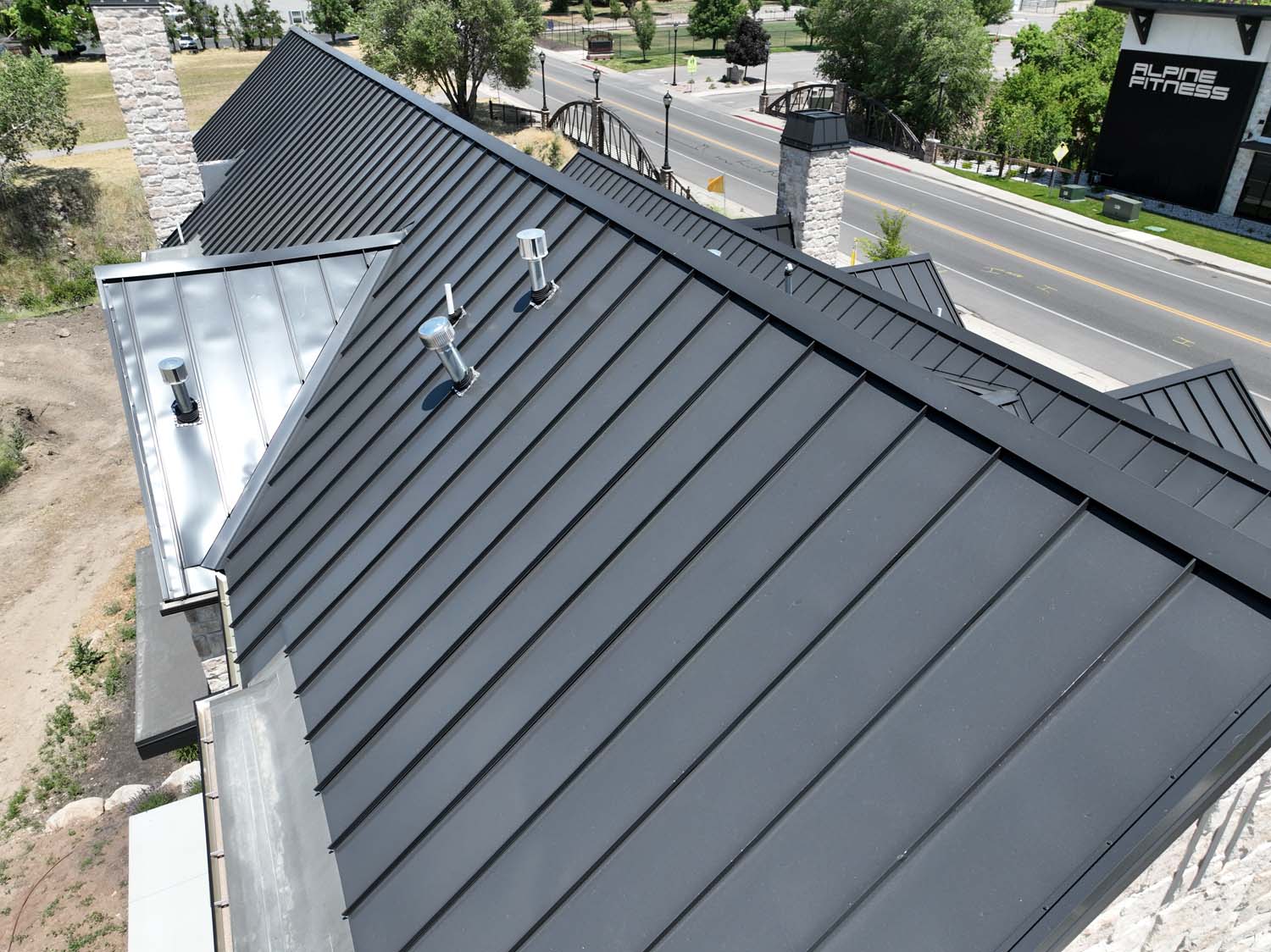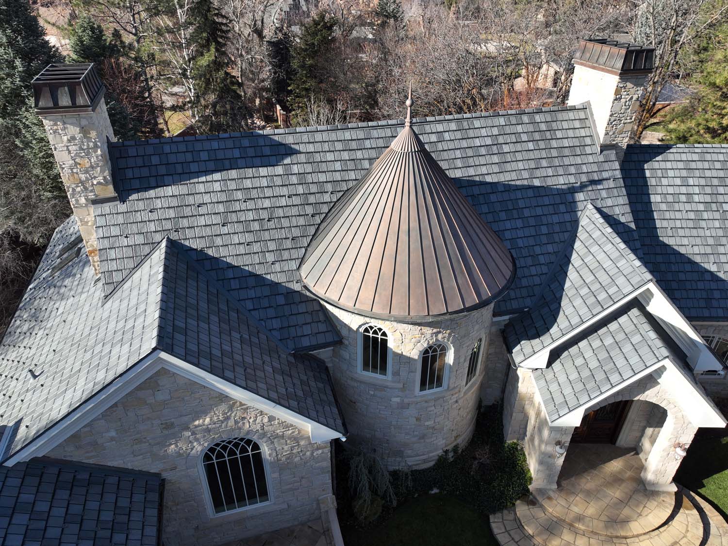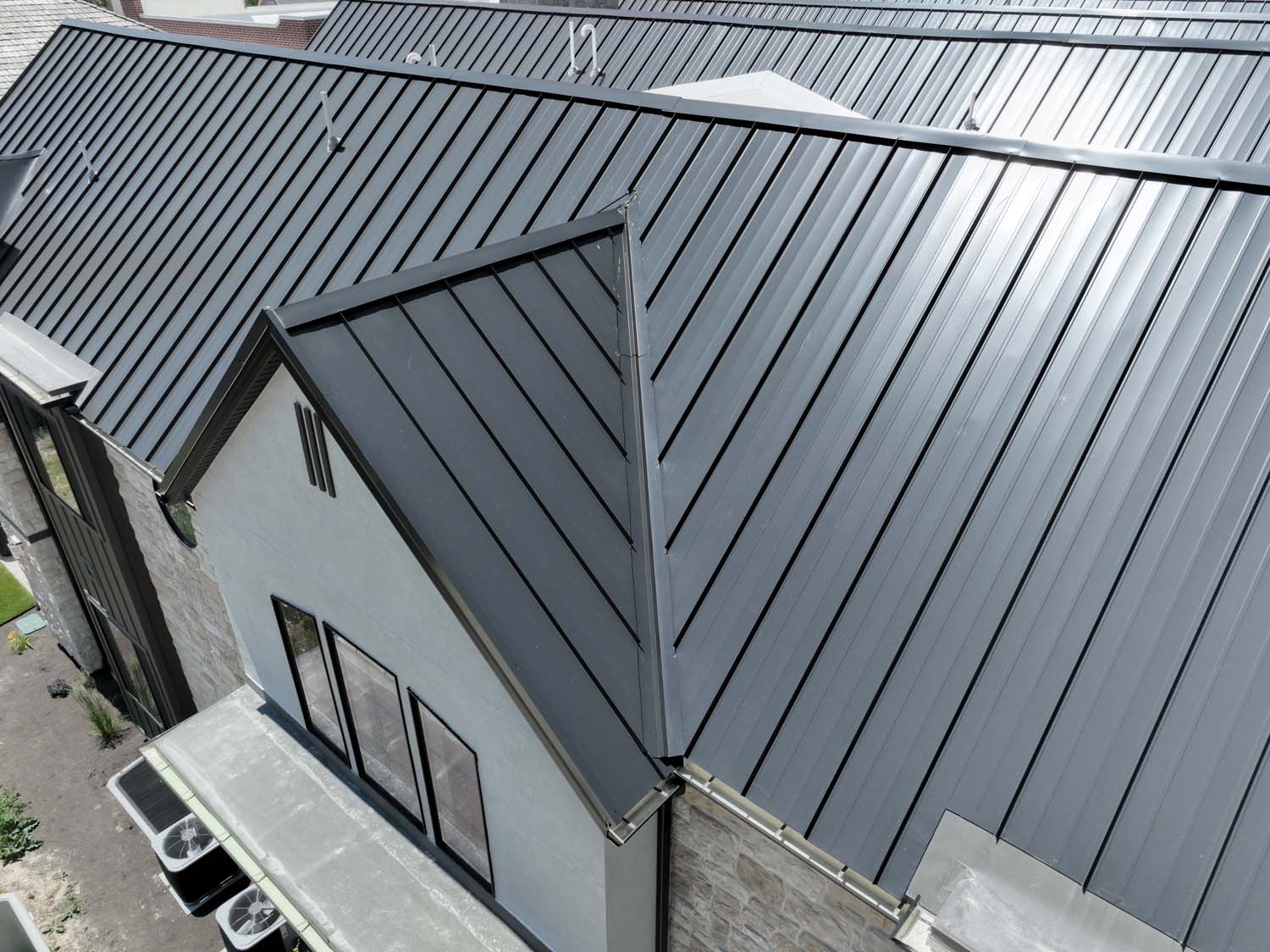 “We are very proud of the raised seam metal roof crafted by Brady Roofing & partners. Our roof had multiple challenges, and their customer-friendly crews did a fine job figuring it out and getting the job done. We even got drone views of what a fabulous roof they created for us.”