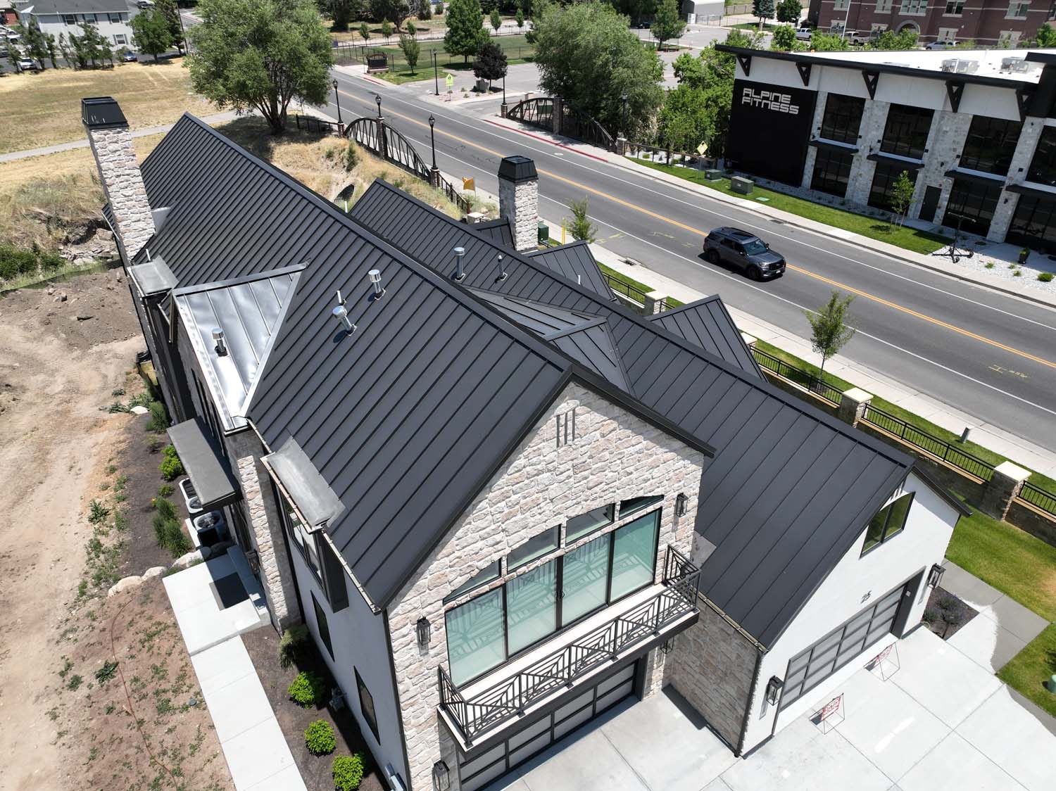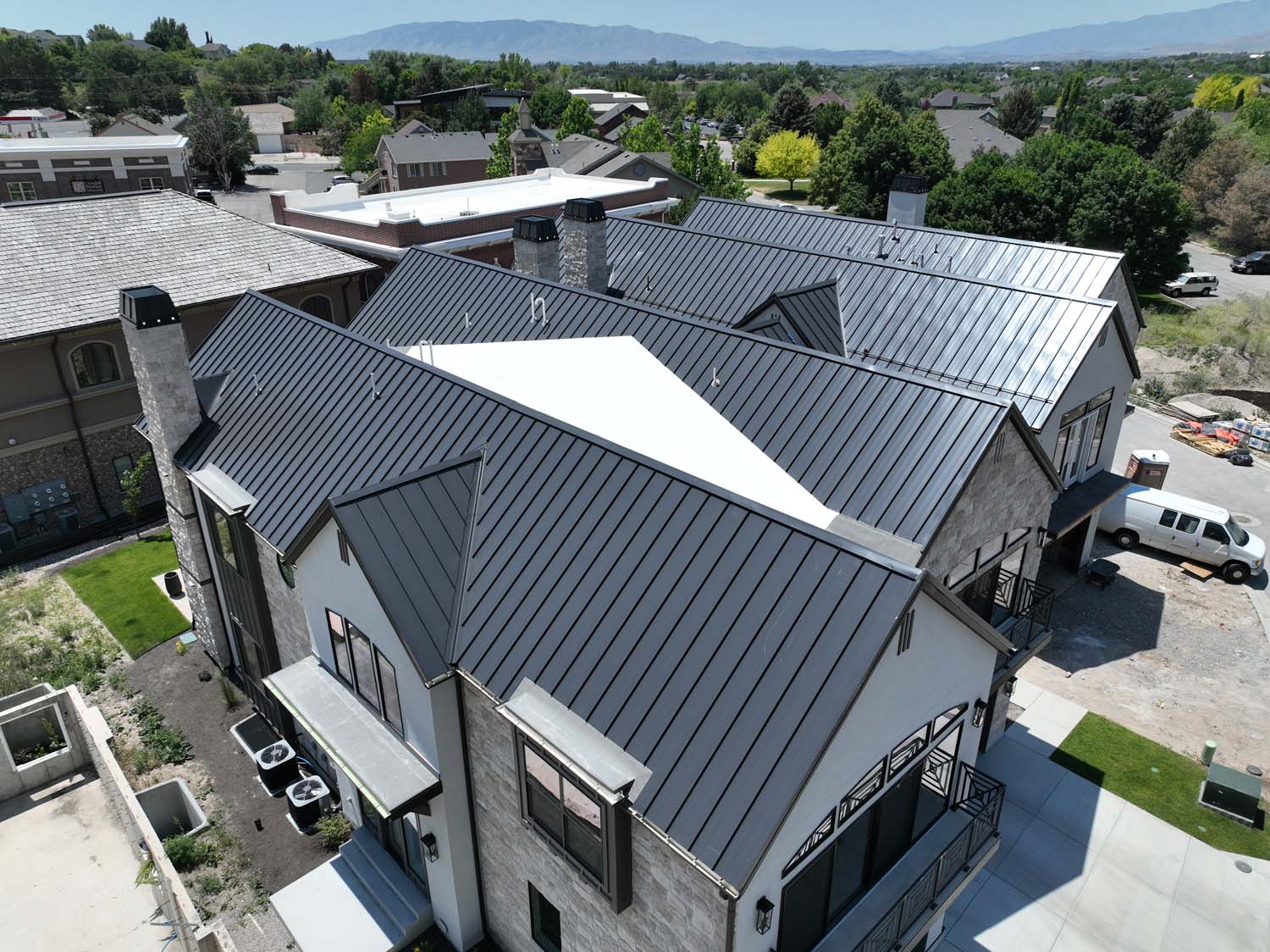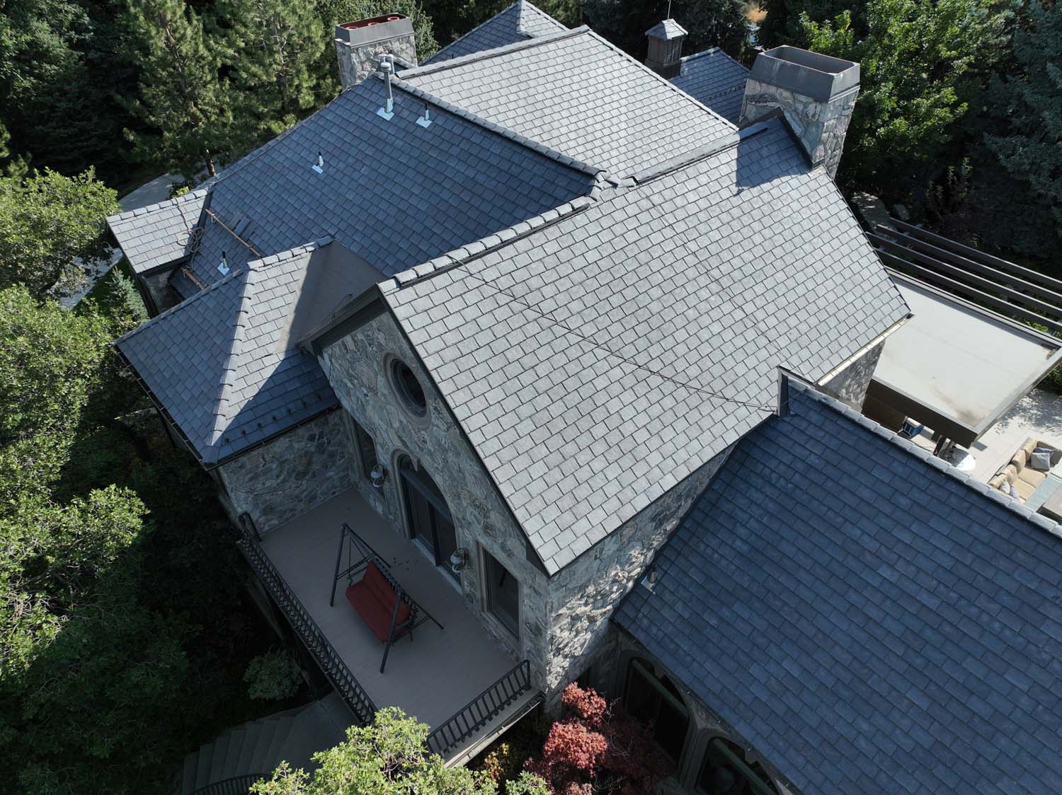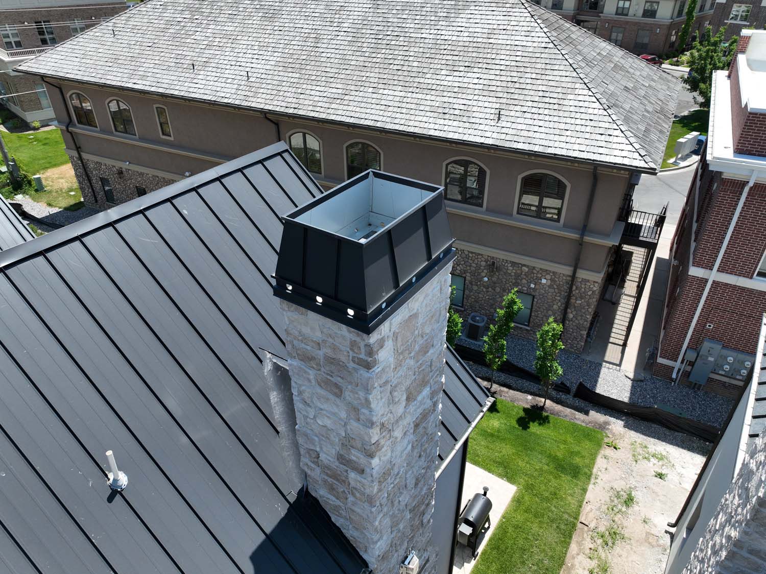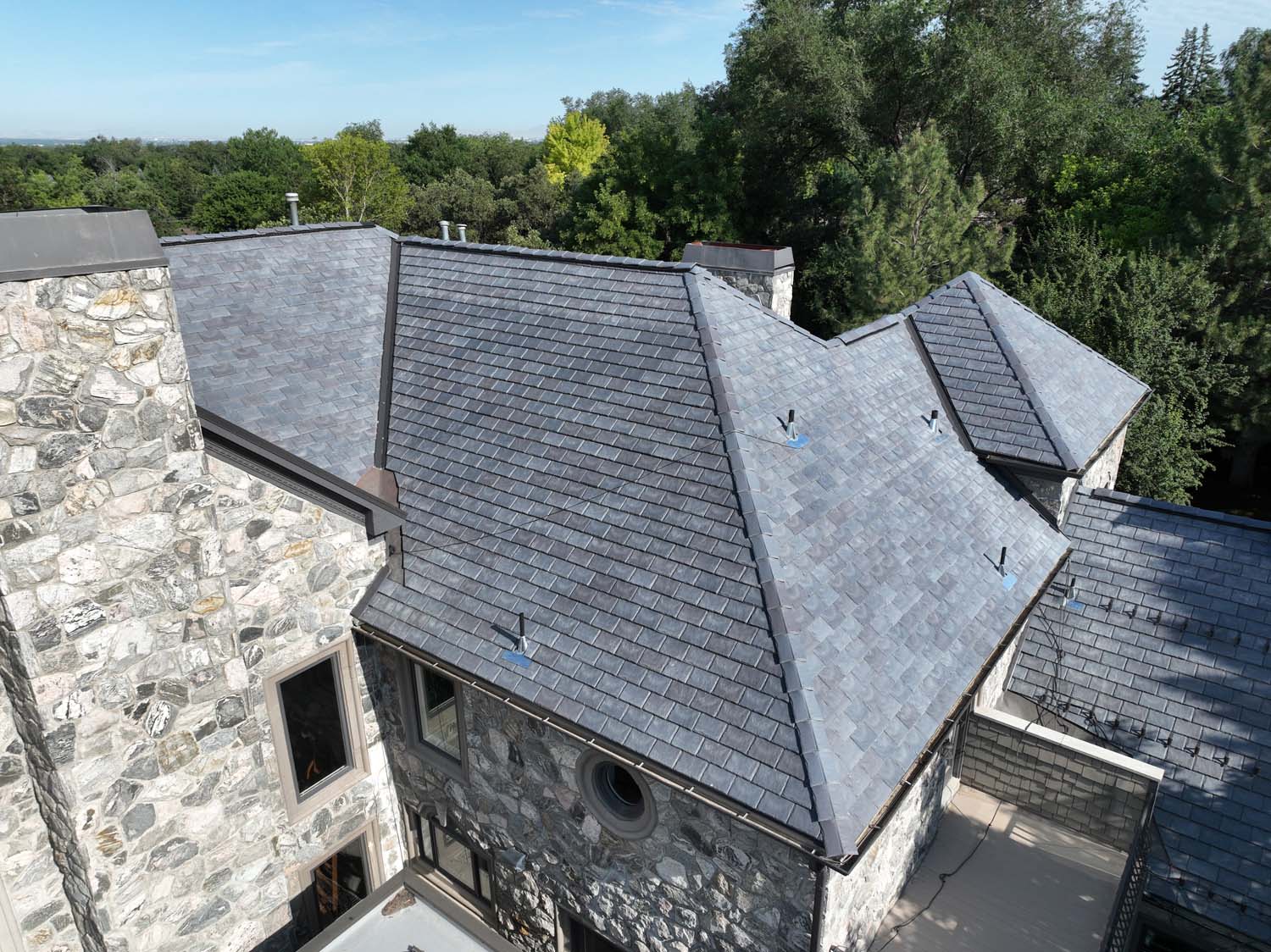 “We are very proud of the raised seam metal roof crafted by Brady Roofing & partners. Our roof had multiple challenges, and their customer-friendly crews did a fine job figuring it out and getting the job done. We even got drone views of what a fabulous roof they created for us.”