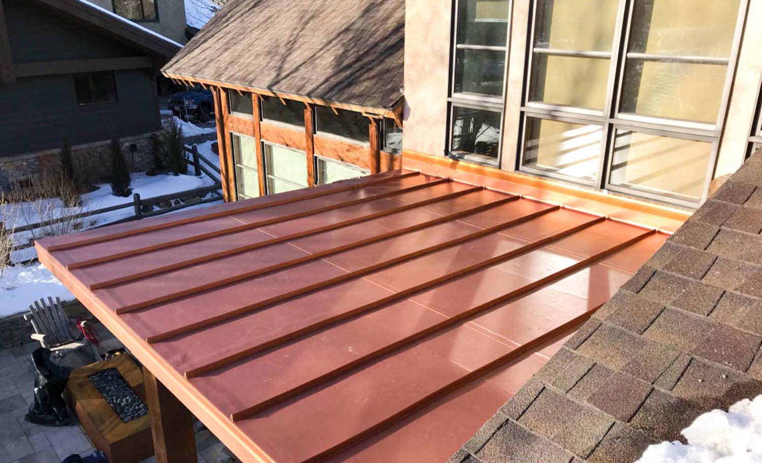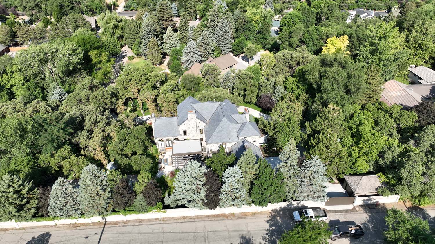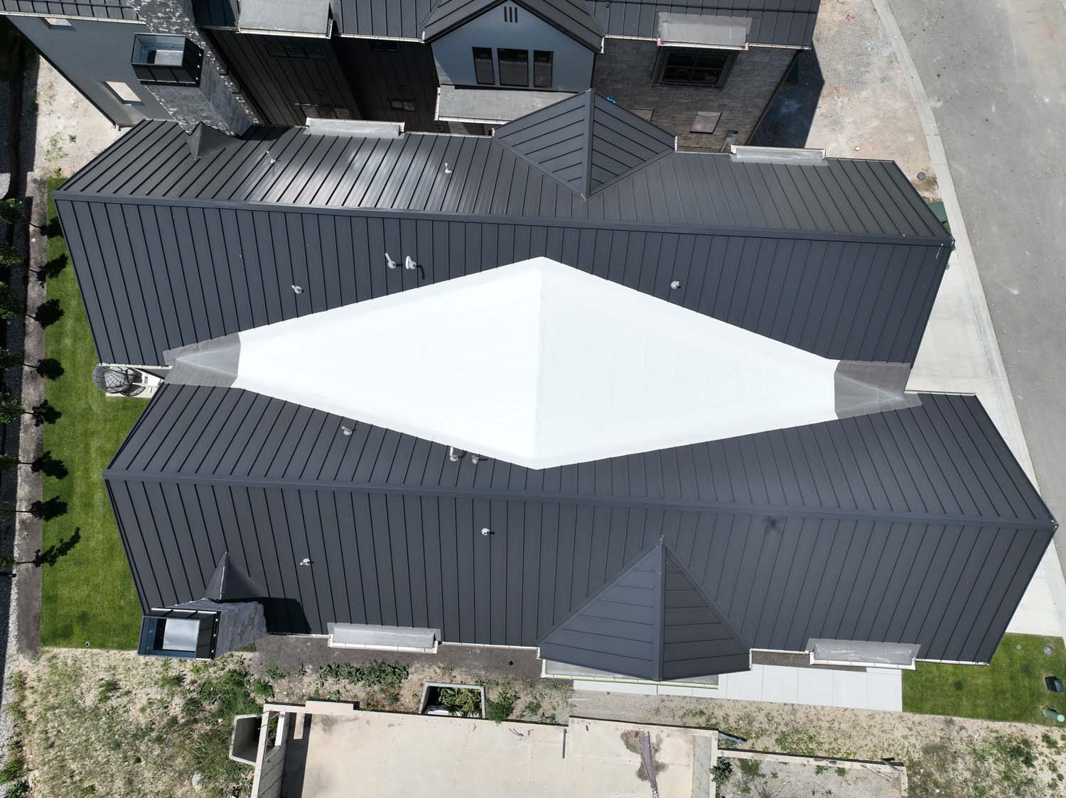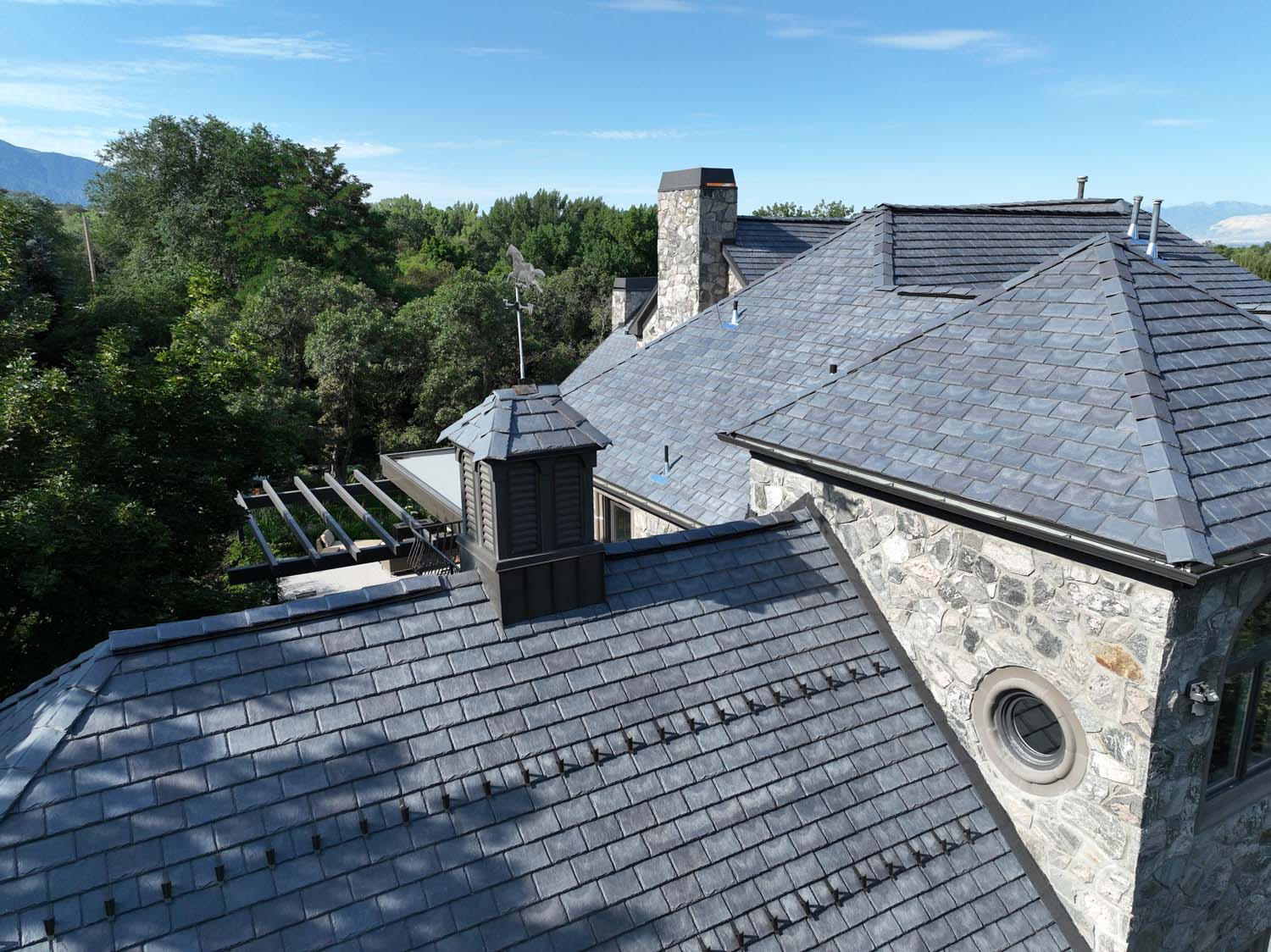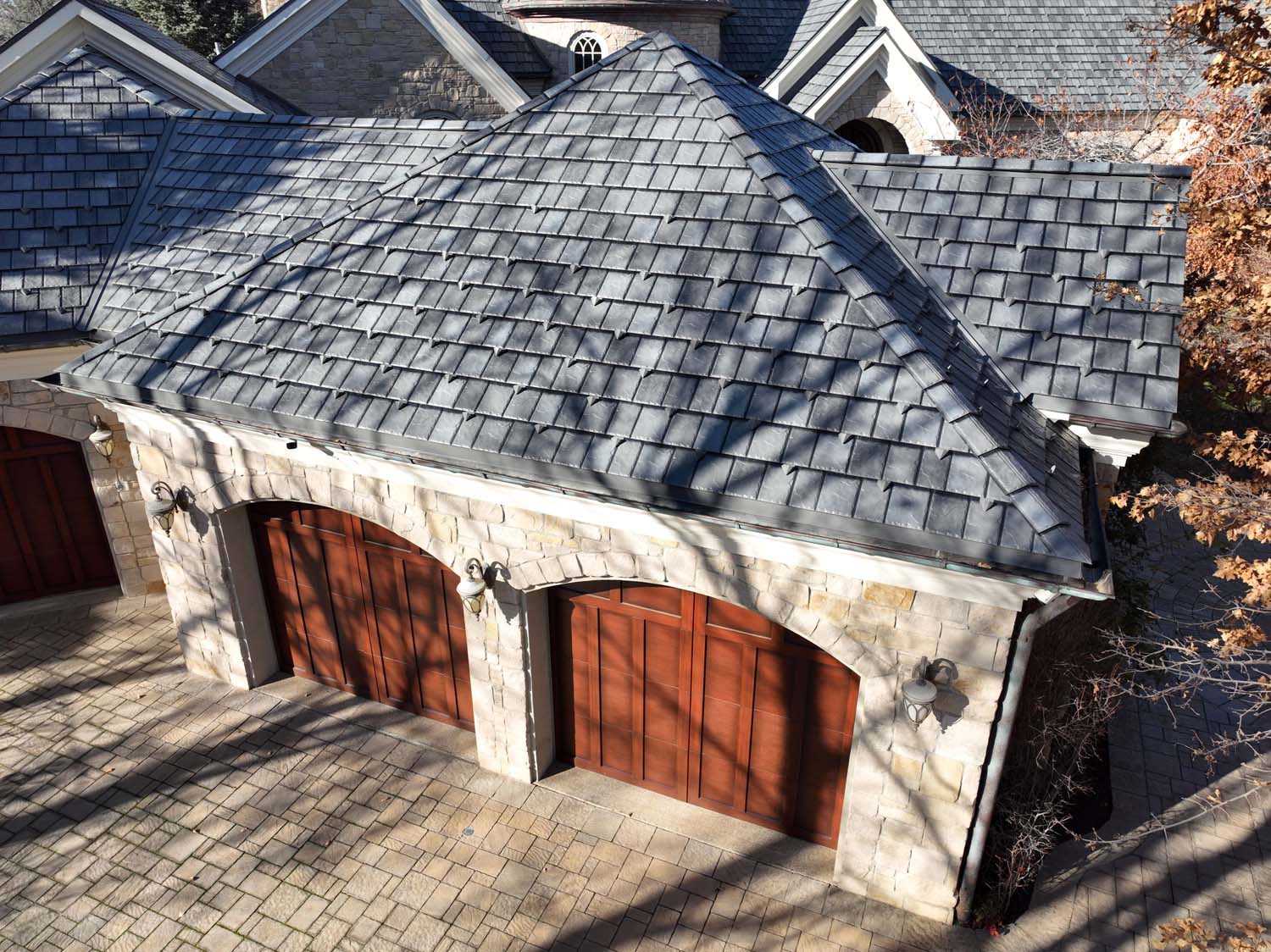 “We are very proud of the raised seam metal roof crafted by Brady Roofing & partners. Our roof had multiple challenges, and their customer-friendly crews did a fine job figuring it out and getting the job done. We even got drone views of what a fabulous roof they created for us.”
